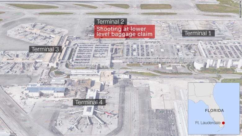• Parts of the airport were evacuated. Aerial footage from CNN affiliates showed large groups of people standing outside on the tarmac. • More than an hour after the shooting, tensions were still running high, a witness told CNN. "Everyone sprinted outside again. We are back out on the tarmac," Judah Fernandez said, adding that it was unclear why people had rushed outside. Active search: Unconfirmed reports of addt'l shots fired on airport property. — Broward Sheriff (@browardsheriff) January 6, 2017 • The first call about the shooting came in at 12:55 p.m. ET. • Most flights scheduled to land at the airport were diverted, the FAA said. The airport had not resumed operations by 7 p.m ET. Passengers were being allowed to leave in the evening, but no one was allowed inside the terminals. ✈️ TRAFFIC ALERT: Updated FAA statement on @FLLFlyer status: pic.twitter.com/FnpfqNb4NK — The FAA (@FAANews) January 6, 2017 • In November 2016, nearly 2.5 million travelers passed through Fort Lauderdale's airport, according to a government report on the facility. • The airport serves about 30 airlines. Many passengers use it because of its convenience to nearby cruise ship terminals.