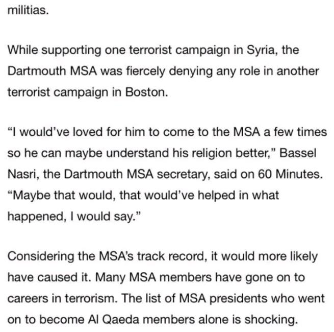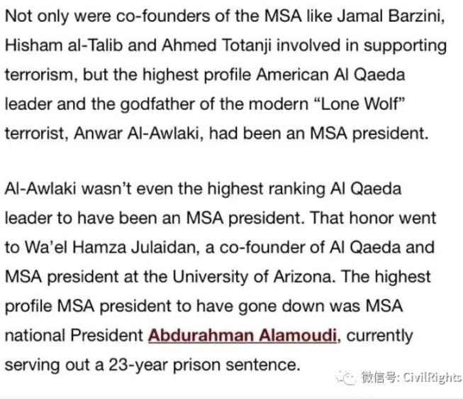 文中提到MSA的创建者们,主席们参加了不同的恐怖组织及活动。