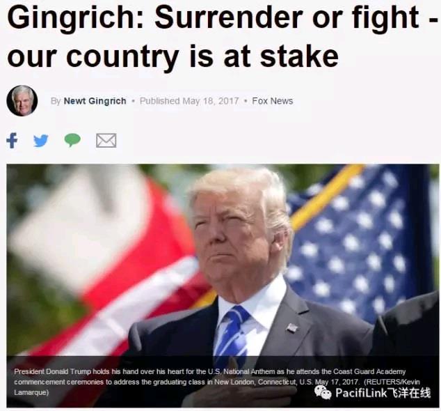 昨天发了一篇千里走单骑的文章,"老川啊,还能忍吗?该反击了!" 相信很多人有同感,面对左派无穷无尽的恶意攻击,川普还在被动防守。到底是委曲求全,还是蓄势待发? 自从川普入职以来,民主党已经不是在监督执政党,逢川必反也早已超出党派之争的范畴。虽然"弹劾"还是痴人说梦,这显然是很多人的终极目标,最起码也要让他一事无成。至于国计民生,根本不在这些人的考虑范围之内。 那么川普会怎么做?还能不能重振雄风,再次摧枯拉朽一般击破民主党的围剿? 我们只能猜测,因为我们毕竟是局外人,不会真正了解他的处境,对政治的黑暗以及斗争的险恶也是只知皮毛。但是牛金贵,Newt Gingrich,可不是一般人。这位前众院议长在政界摸爬滚打几十年,曾是川普团队的得力干将,还是最后两位副总统候选人之一。大选期间他对时局的分析非常精辟,常常一针见血。 5月18日,牛金贵在Fox News上发表了一篇铿锵有力,掷地有声的长文。或者更贴切地说,一篇慷慨激昂的战斗檄文。飞洋在线全文翻译如下,与读者共享。