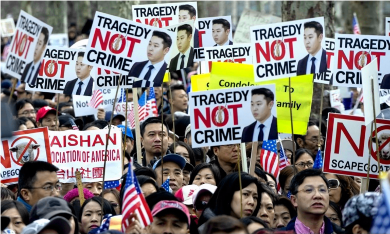 In this Feb. 20, 2016 file photo, protesters attend a rally in the Brooklyn borough of New York in support of former NYPD police officer Peter Liang. (AP Photo/Craig Ruttle, File) Protesters noted that as tensions have mounted between the African American communities and police forces nationwide, no officers were indicted in high-profile cases like that of Michael Brown in Ferguson, Mo., and Eric Garner in Staten Island, N.Y. The officers involved in those killings were white; Liang is Chinese American. Some supporters of Liang agreed with the conviction, but advocated for a light sentence. Fliers handed out at rally in downtown Los Angeles conveyed “deepest condolences” to Gurley’s family, but said protesters were “equally saddened by the selective and unjust prosecution of Peter Liang, who is made the scapegoat of the police brutality that has long troubled our society.” The issue divided Asian Americans, as others defended the verdict and took part in counter-protests led by Black Lives Matter organizers. Annie Tan wrote in the Huffington Post: “Officer Liang may have been shortchanged by a police institution that did not train him properly and then abandoned him, but he is not a victim. His actions directly and unjustifiably caused the death of another.” Tan’s uncle was Vincent Chin, a 27-year-old Chinese American who was fatally beaten by two white men outside of a McDonald’s in 1982. His death became a watershed moment for Asian Americans, as they rallied for hate crime convictions for the perpetrators, who were sentenced to three years probation and no jail time for manslaughter. “Vincent Chin has far more in common with Akai Gurley than with Peter Liang,” Tan wrote. “Like Akai Gurley, my uncle Vincent was killed because he was a person of color…Injustice is injustice.” Writing for the New York Times Magazine, Jay Caspian Kang said the “Liang protests mark the most pivotal moment in the Asian-American community” since Korean American businesses were burned to the ground during the 1992 Rodney King protests in Los Angeles. For Kang, a Korean American journalist, the knotty, often discordant messages from Liang supporters were characteristic of a group without a solidified “political language”: I cannot adequately describe the conflict in feeling like a race traitor for applauding Liang’s conviction while also feeling like a race traitor for questioning it…This is the stunted language of a people who do not yet know how to talk about injustice. Liang will be sentenced on April 14.(Source: Washington Post)