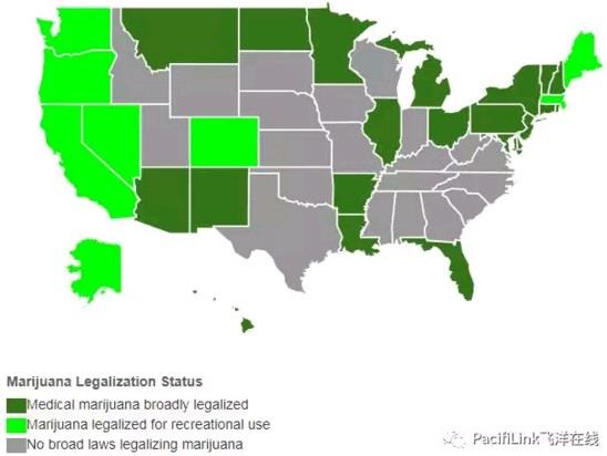 图片来自Governing.com 这也是为什么飞洋在线坚决反对大麻合法化的原因。才短短几年,在民主党政客的大力推动下,大麻已经在好几个州合法(参见上图亮绿色部分)。上面提到的位于华盛顿州的西雅图就是一例,其市长不但支持大麻合法,而且提倡免费供应。即使这种做法在一定程度上能减少恶性犯罪,但是从长远看,很多人会逐渐觉得不过瘾,从而开始沾染更强的毒品。上瘾之后再戒毒,比防患于未然要难得多。 珍惜生命,远离毒品。