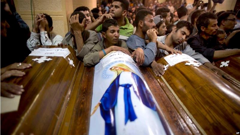 在袭击中不幸身亡的埃及科普特基督徒的葬礼 (2017年5月17日) 华盛顿 — 出于安全考虑,埃及科普特正教会暂停了7月份教会的一切室外活动。 这就意味着所有跟教会有关的旅行和会议都被取消,夏令营和出游也提前结束。 教会官员没有说明暂停活动是谁建议的,也没有说明任何具体威胁。 伊斯兰国组织声称,5月份在埃及中部杀死了至少28个前往一个修道院的人,并威胁说,要继续对埃及的基督徒发动袭击。 棕枝主日发生的两起教堂爆炸案据信也是伊斯兰国组织制造的,造成44人丧生。 埃及约十分之一人口是基督徒。