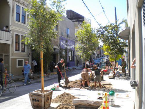 旧金山市长李孟贤和市议员史义及工务局局长纽鲁等人,7月19日在Noe谷23街举行新闻发布会,庆祝旧金山街道树木维护项目的启动。这个启动项目是由选民通过提案,将旧金山街道树木维护及更换受等工作,全部交给旧金山工务局负责。