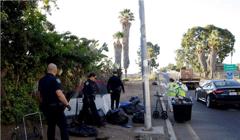 美国加州圣迭戈警察清除街头无家可归者留下的帐篷 自从1996年有了可以预防甲型肝炎的疫苗以来,美国加利福尼亚州正发生最大规模的甲型肝炎人与人之间传染。迄今加州已发现了600多个病例,其中21人死亡。加州公共卫生部说,大部分感染甲型肝炎的人是无家可归者和在卫生状况不佳的地方使用毒品的人。 洛杉矶市区附近有一个流浪人口聚集的地区。最近一项调查显示,那里的卫生状况低于联合国的难民营标准。根据联合国标准,每20人应有一个公共厕所。 分析人士说,糟糕的卫生状况成为甲型肝炎病毒流行的温床。