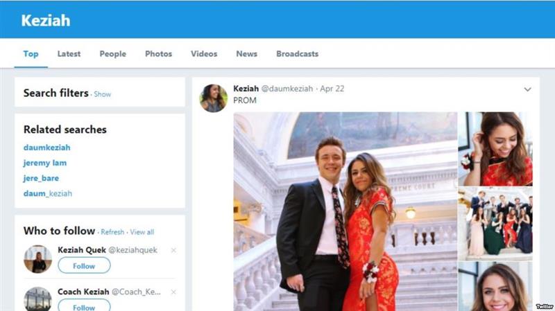 18岁女生克齐雅·道姆(Keziah Daum)道姆的推特账户显示她穿旗袍的照片。