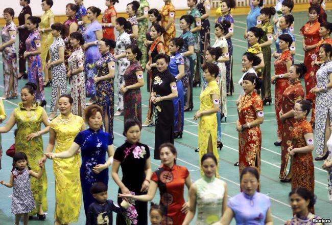 杭州人穿旗袍,参加创造各地人同时穿旗袍的人数世界纪录(2015年5月16日)