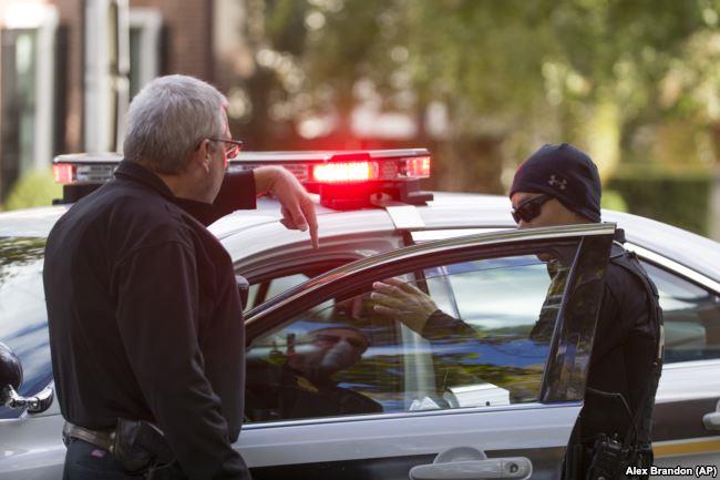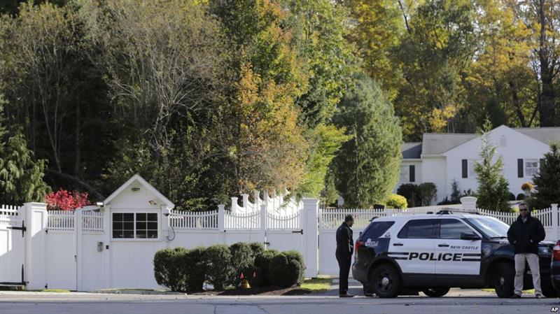 警车停在克林顿夫妇位于纽约郊区的住所门口