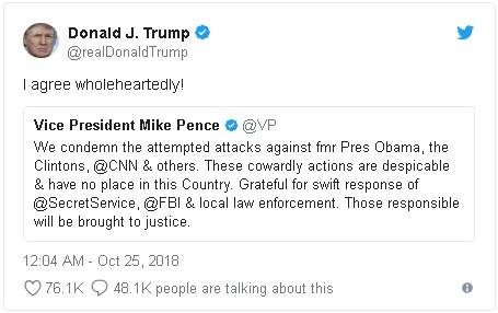 炸弹邮件寄给奥巴马克林顿 特朗普谴责卑鄙可恶行径