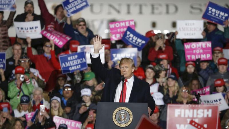 特朗普总统在威斯康辛州后的一次集会上讲话。(2018年10月25日)