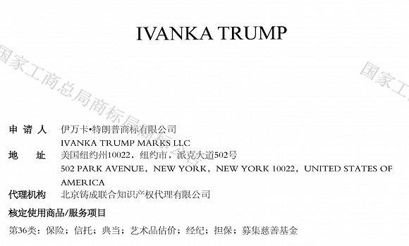 Ivanka Trump 第36类商标通过初步审定的公告 截至发稿前,伊万卡在中国的律师团队并未对此事作出回应。 “伊万卡于白宫任职期间获得一定数量国外商标这件事已经足够棘手,并且伊万卡还注册了关于慈善基金的商标,这恰逢她父亲的同名基金会——特朗普基金会被控触犯选举献金法、滥用免税条款等而被纽约州检察官调查,这让情况更加麻烦。” 华盛顿公民责任和伦理组织(Citizens for Responsibility and Ethics in Washington)发言人Jordan Libowitz对美联社表示。 Ivanka Trump品牌由伊万卡于2010年创立,产品包括成衣、鞋履和包袋,主打轻奢定位,价格约在100至500美元之间。但自从特朗普当选美国总统以来,外界对特朗普家族利用政府职务之便而谋取利益的质疑就没有停过。伊万卡公关团队也曾承认,伊万卡在参加演讲或接受采访时有过借机宣传品牌的行为。 2018年7月,伊万卡出于为父亲的政府工作的承诺宣布关停该品牌,并在公告中表示,“我不知道什么时候或者是否还会重返这个行业,但我知道,在可预见的未来里我将把工作重点放在华盛顿的事业上,现在做出的这个决定是对品牌团队和合作伙伴来说唯一公平的结果。”
